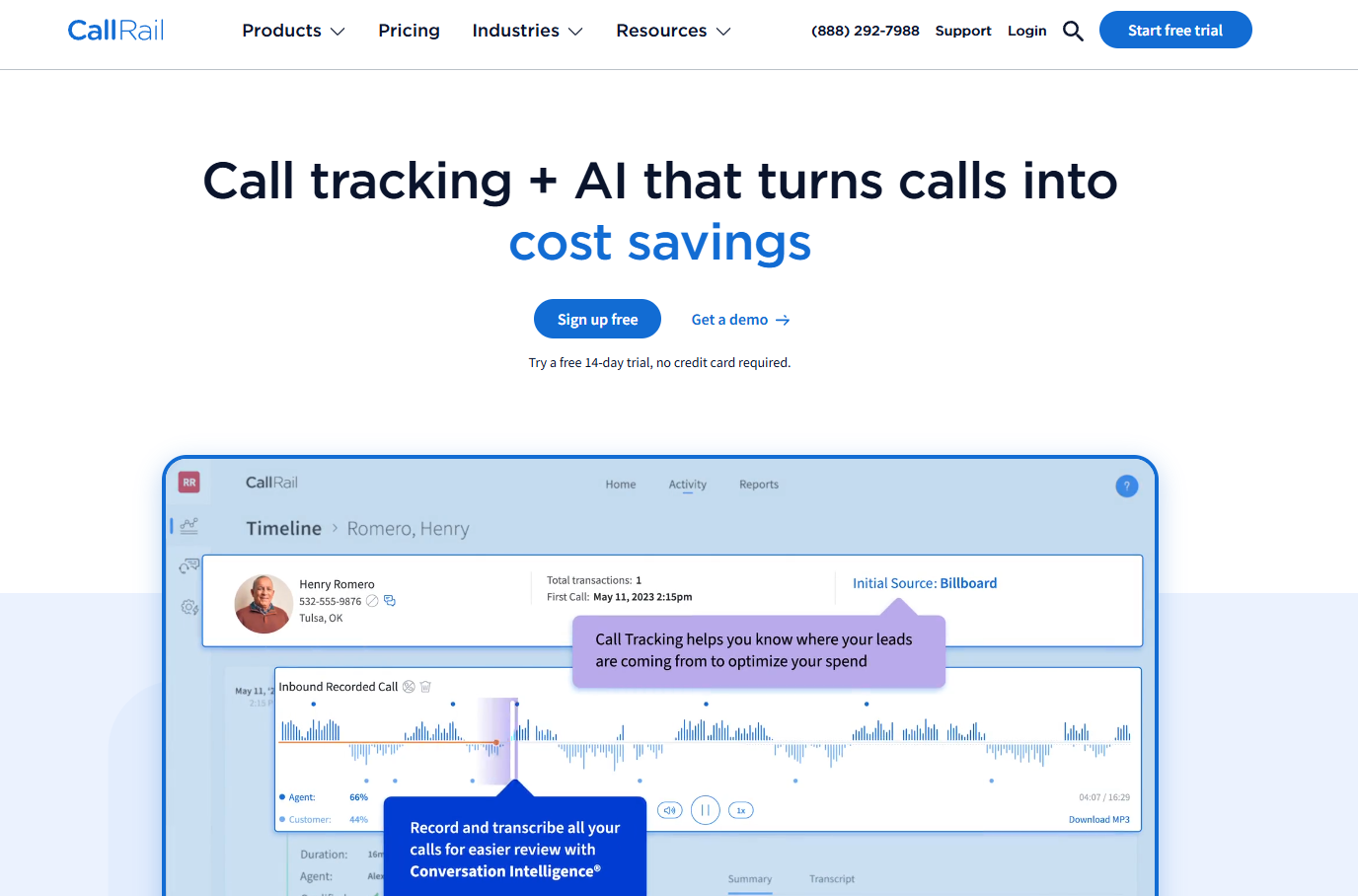 CallRailは、通話追跡、録音、分析のために主に設計された堅牢なプラットフォームであり、リードを管理し、電話通話のパフォーマンスを追跡しようとする企業に特に役立ちます。その機能は、マーケティングチームと電話コミュニケーションに大きく依存している企業に対応しています。
